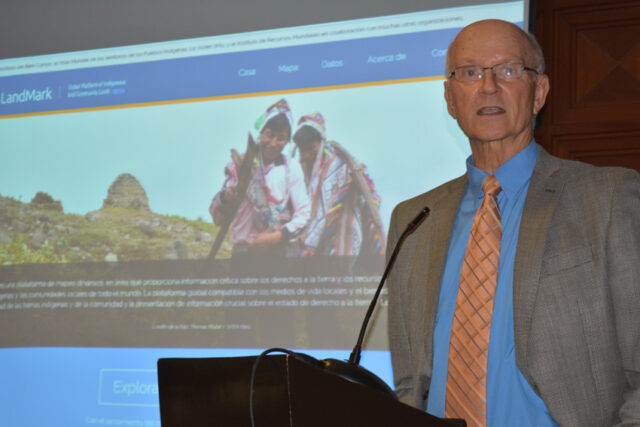 Landmark es la primera plataforma global interactiva que contiene mapas e información clave sobre las tierras que son propiedad colectiva de los pueblos indígenas y las comunidades locales. Esta iniciativa responde al gran desafío global que plantean, de un lado la inseguridad jurídica e invisibilidad de las tierras comunitarias y, de otro, la creciente demanda de tierras y recursos naturales por parte de grandes corporaciones privadas, explicó el director ejecutivo del Instituto del Bien Común, Richard Chase Smith.